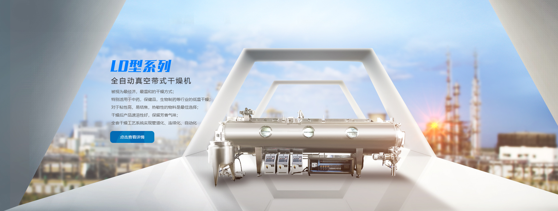 主要研發(fā)和生產(chǎn)具有自主知識產(chǎn)權的中藥提取濃縮成套設備、中藥浸膏低溫真空帶式連續(xù)干燥機等產(chǎn)品